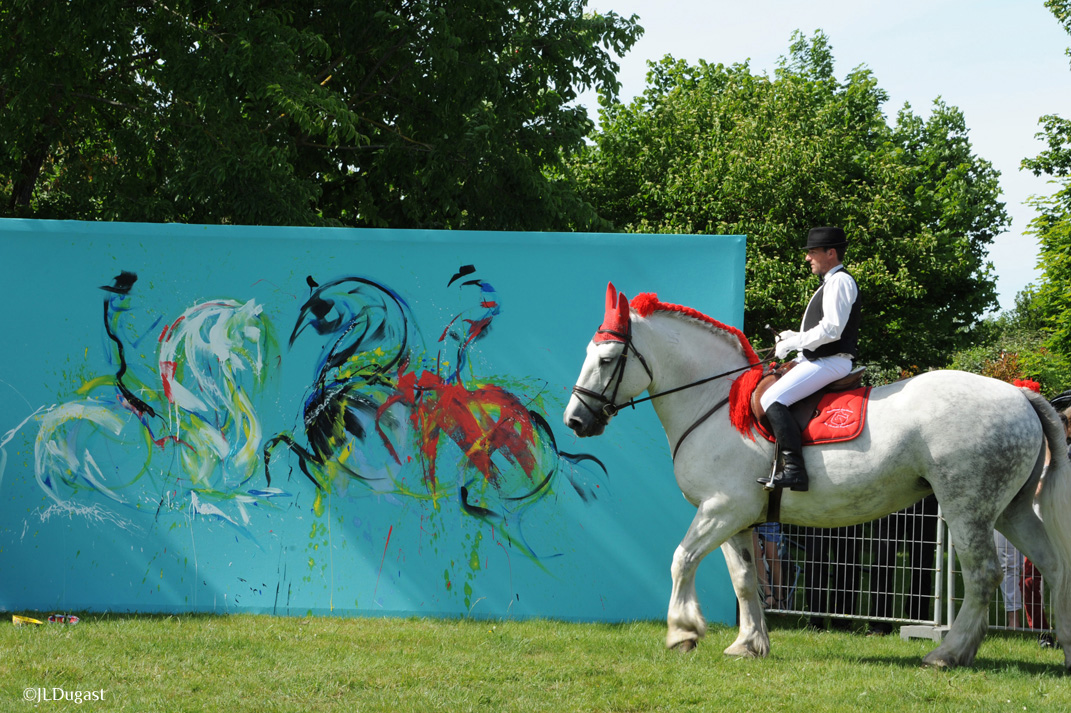 Une rencontre entre Liska Llorca, plasticienne "Live-Painting" et le "pas de deux" du Carrousel Sarthois, dans le cadre de la fête Œuvre de cheval et d'art.